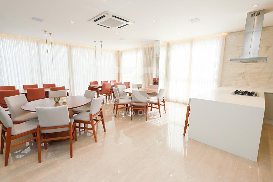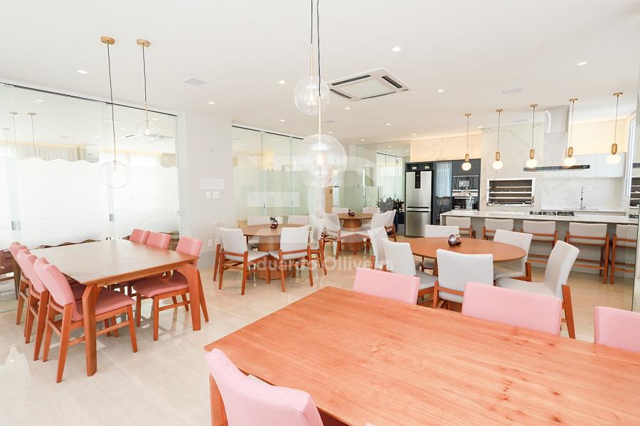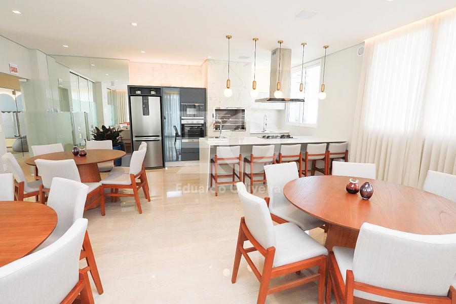 Com 185 m² privativos, o imóvel apresenta um projeto moderno e elegante, distribuído em três suítes, sendo uma suíte master com banheira. O amplo living integrado de estar e jantar proporciona conforto e excelente aproveitamento dos espaços, conectado a uma sacada com churrasqueira a carvão e vista para o mar, ideal para momentos de lazer e convivência. O apartamento conta ainda com lavabo, cozinha, área de serviço e três vagas de garagem, atendendo com excelência às necessidades de quem busca alto padrão e funcionalidade.