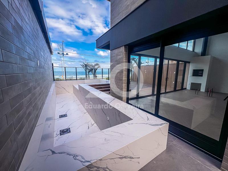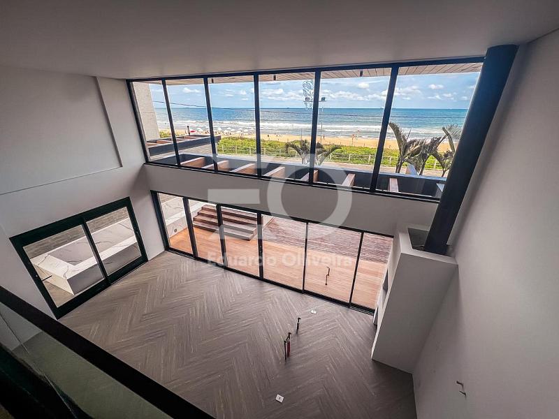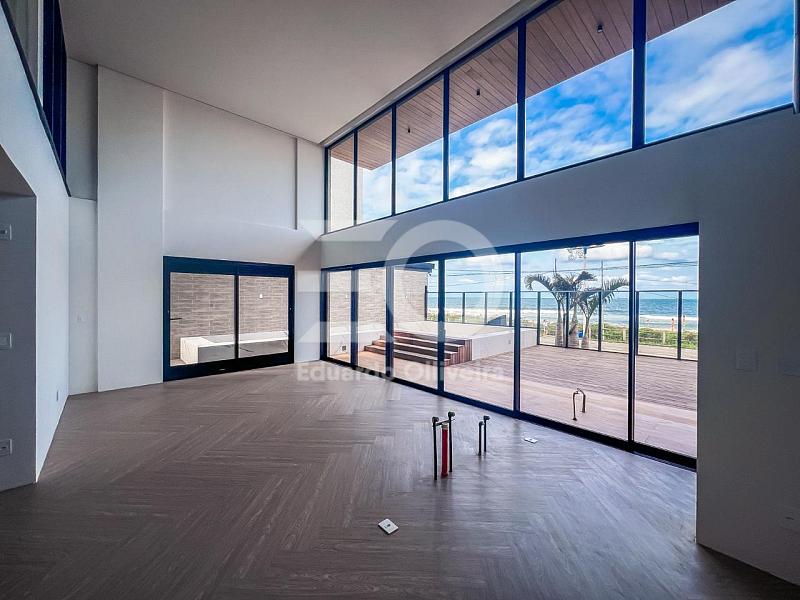 Este imóvel impressiona logo na chegada com um living imponente de pé-direito duplo, totalmente integrado à cozinha gourmet e aos ambientes sociais, criando uma atmosfera contemporânea, elegante e banhada por luz natural. A área social se conecta de forma fluida ao terraço frontal e lateral, onde o mar se torna parte da decoração e o lazer ganha protagonismo com uma piscina privativa generosa, churrasqueira a carvão e espaços ideais para receber e contemplar a vista permanente do oceano.