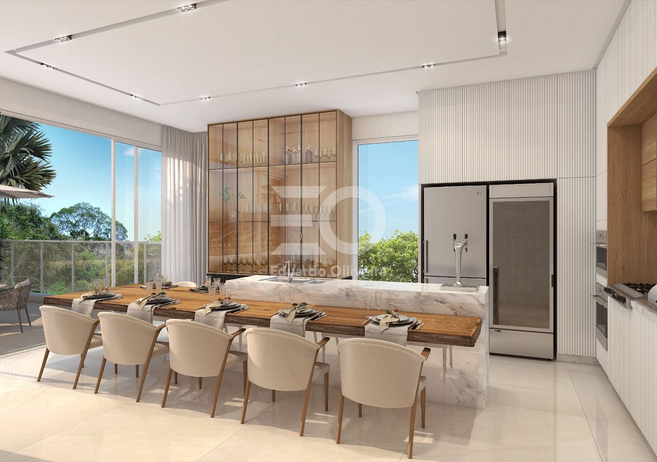 O apartamento foi cuidadosamente projetado para oferecer ambientes amplos, bem distribuídos e com excelente iluminação natural. A integração entre sala de estar, jantar e cozinha cria um espaço moderno e acolhedor, ideal tanto para o dia a dia quanto para receber convidados com conforto e elegância. Os acabamentos seguem um padrão elevado, valorizando cada detalhe e proporcionando uma experiência de moradia sofisticada.