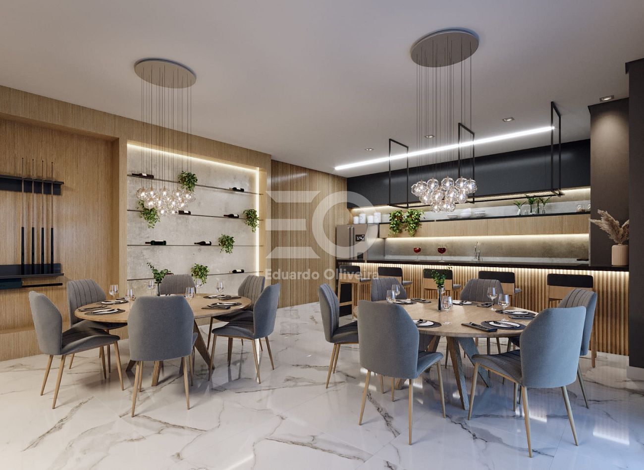 O apartamento possui 95,5 m² de área privativa, com uma planta moderna e muito bem distribuída, composta por dois dormitórios, ambos suítes, além de lavabo. Os ambientes de estar e jantar são integrados à cozinha, criando uma área social aconchegante e funcional, ideal para o dia a dia e para receber convidados. A sacada com churrasqueira amplia a sensação de espaço e proporciona momentos agradáveis de convivência. O imóvel conta ainda com duas vagas de garagem, oferecendo comodidade e segurança.