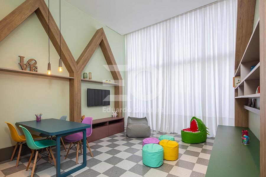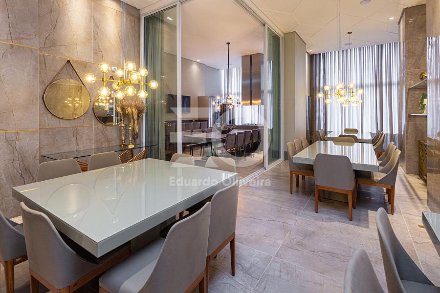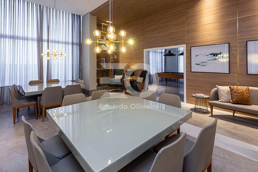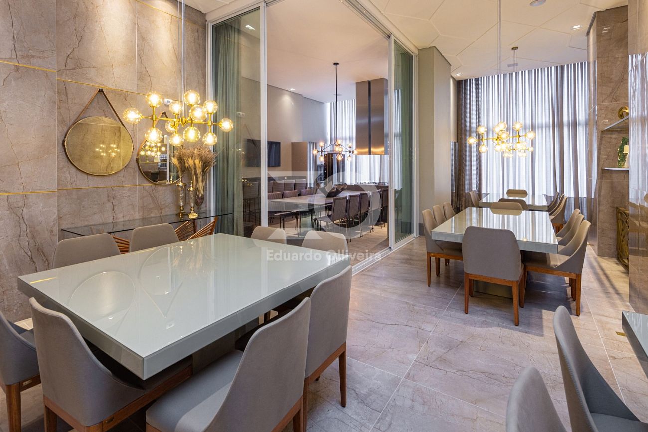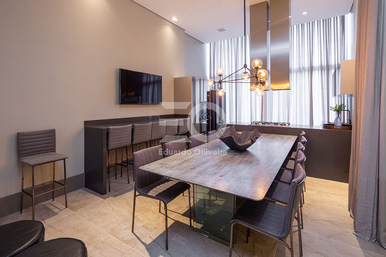 O imóvel possui uma planta ampla e bem distribuída, com quatro dormitórios, sendo duas suítes e duas demi-suítes, proporcionando conforto e privacidade para toda a família. A suíte master se destaca pelo espaço generoso e pelas amplas janelas, que garantem excelente iluminação natural e ventilação. O living integrado à cozinha cria um ambiente moderno, elegante e acolhedor, ideal para receber, além de contar com lavabo exclusivo para a área social. O apartamento ainda dispõe de lavanderia, área técnica e pé-direito elevado, que reforça a sensação de amplitude e sofisticação. Os acabamentos seguem um alto padrão, com porcelanato de grandes formatos nas áreas sociais, revestimento vinílico na área íntima, teto rebaixado em gesso e infraestrutura completa para automação residencial e aspiração central.