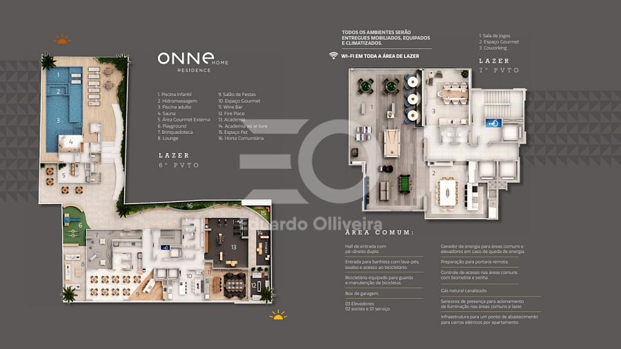 O empreendimento oferece uma estrutura de lazer completa, digna de um verdadeiro clube residencial. Piscinas adulto e infantil, hidromassagem, solarium e lounge externo proporcionam momentos de relaxamento, enquanto a academia equipada, sauna úmida e playground atendem todas as idades. Para o convívio social, o espaço conta com salão de festas, dois espaços gourmet, espaço gourmet externo, wine bar e fireplace, além de sala de jogos e coworking, ideais para quem busca conforto também no dia a dia profissional. Há ainda brinquedoteca, bicicletário, playdog e até horta, reforçando um conceito moderno de viver bem.