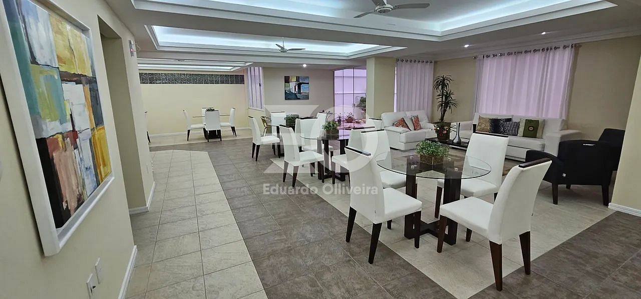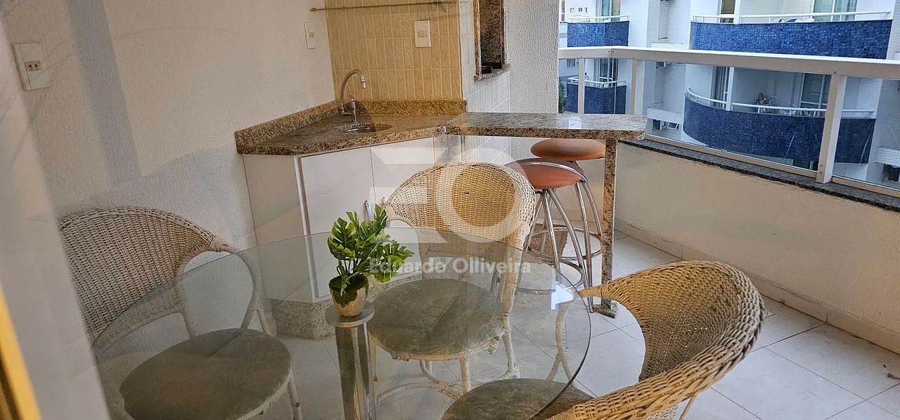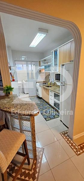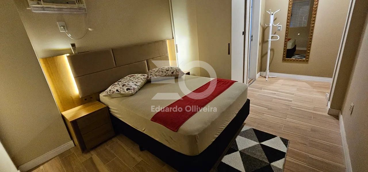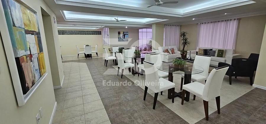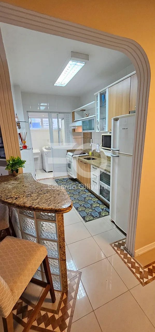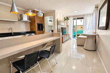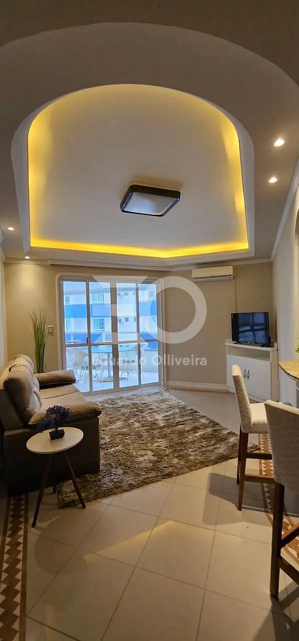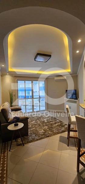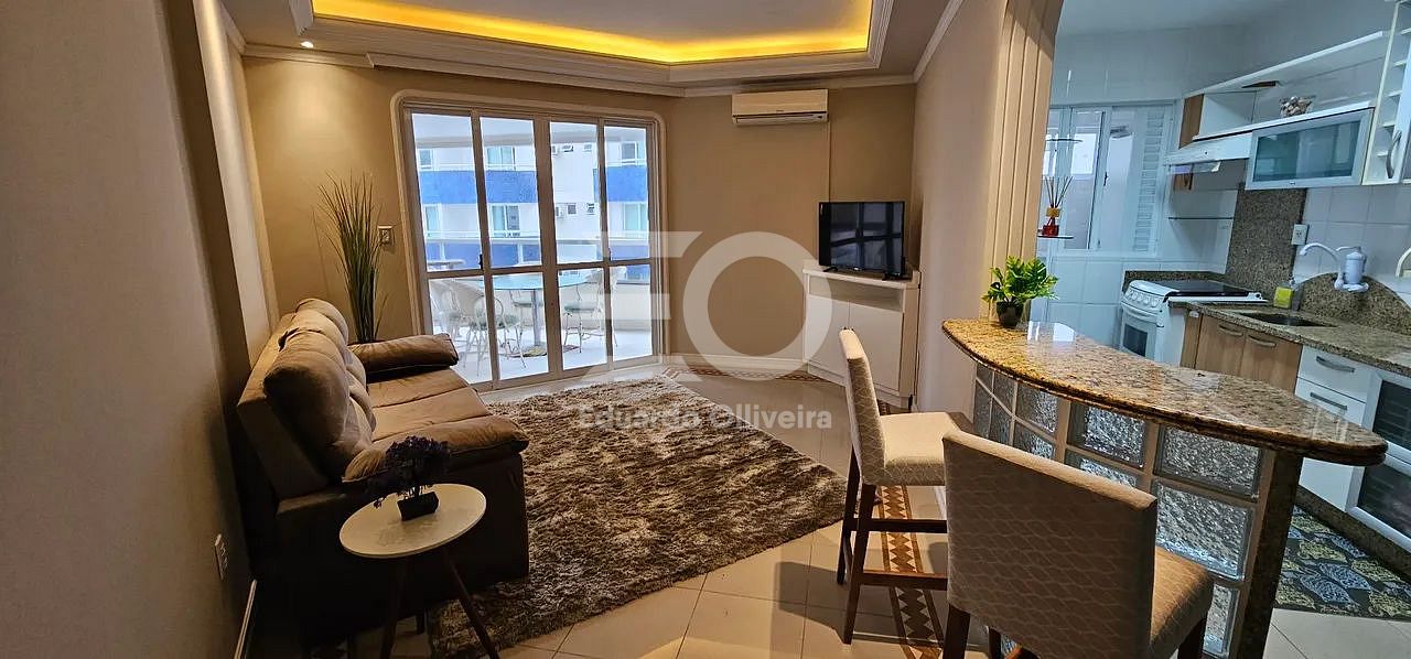 Com 90 m² de área privativa, o apartamento é entregue totalmente mobiliado e possui planta bem distribuída: 1 suíte, 1 dormitório adicional, sala de estar, sala de jantar, cozinha equipada, área de serviço e sacada com churrasqueira a carvão — ideal para receber amigos com a brisa do mar. Inclui 1 vaga de garagem.
