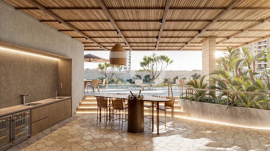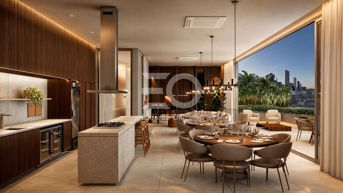 Os apartamentos foram pensados para quem valoriza conforto, funcionalidade e elegância em cada detalhe. Com área privativa de aproximadamente 120 m², as unidades contam com três suítes, quatro banheiros, living amplo e integrado às salas de estar e jantar, cozinha planejada e sacada com churrasqueira, perfeita para momentos especiais. Os acabamentos reforçam o alto padrão, com porcelanato, rebaixo em gesso, hidrômetro e gás individuais, além de espaços bem distribuídos que permitem a criação de um home office sofisticado e funcional, sempre acompanhado de uma vista encantadora.