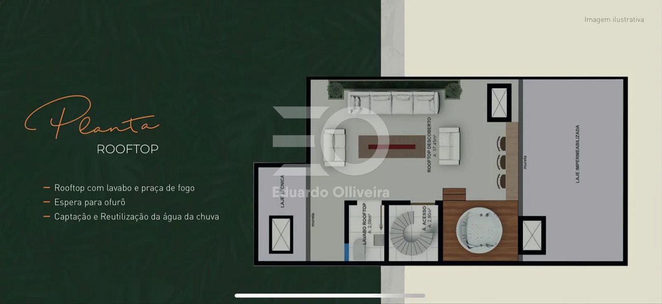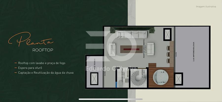 No topo do imóvel, o rooftop se destaca como um verdadeiro espaço de lazer exclusivo. Com lavabo, praça de fogo e preparação para instalação de ofurô, é o local ideal para relaxar ou receber convidados com estilo. O projeto ainda contempla soluções sustentáveis, como captação e reutilização da água da chuva, reforçando o cuidado com eficiência e modernidade.