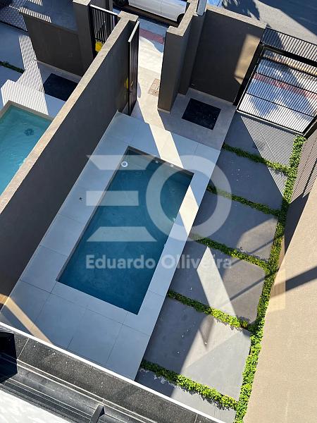 Este triplex foi projetado para oferecer uma experiência residencial única, unindo arquitetura contemporânea, conforto e lazer em cada detalhe. No pavimento térreo, os ambientes sociais se integram de forma harmoniosa, com living amplo e pé-direito elevado que valoriza a iluminação natural e a sensação de espaço. A cozinha se conecta à sala de jantar e ao estar, criando um ambiente perfeito para receber, enquanto o lavabo complementa a praticidade do dia a dia. O acabamento em porcelanato de grandes formatos reforça a sofisticação do projeto. Na área externa, o imóvel surpreende com piscina privativa e espaço pensado para momentos de lazer e convivência, além de duas vagas de garagem que garantem comodidade.